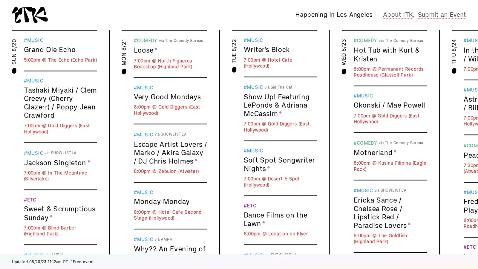 ITK - Los Angeles curated events calendar
